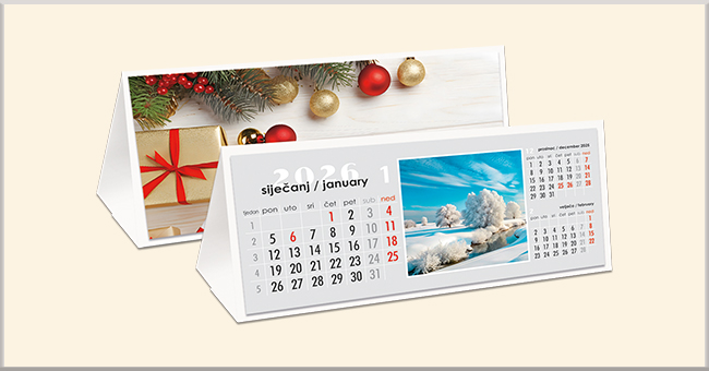 Atraktivno dizajniran kalendar nije samo od pomoći klijentu, već pomaže stvoriti pravi dojam kroz dobar izbor slika, teksta, brojeva i izgleda. Pravilno odabrane slike mogu evocirati emocije i asocijacije koje dodatno povezuju korisnika s vašim brendom, dok pažljivo oblikovan tekst pruža relevantne informacije i podsjetnike. Brojevi, jasno istaknuti i dobro pozicionirani, omogućuju jednostavno praćenje datuma i važnih događaja.